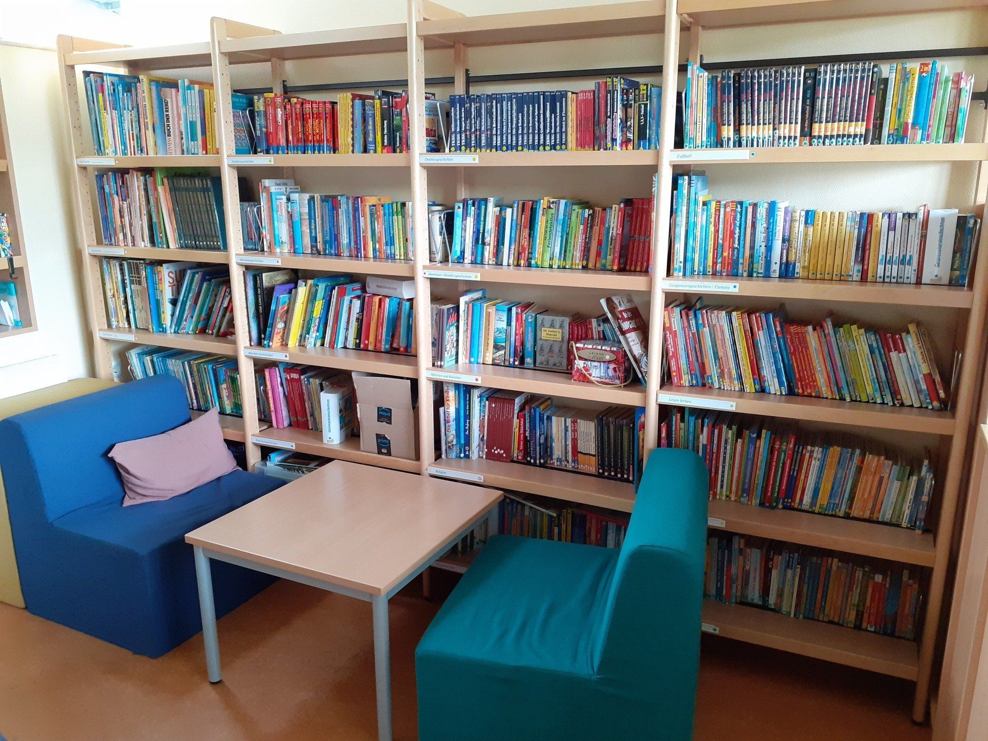 In der Schulbücherei haben die Kinder immer montags in der ersten großen Pause die Möglichkeit Bücher oder Gesellschaftsspiele auszuleihen. Die Bücher können zwei Wochen ausgeliehen werden.